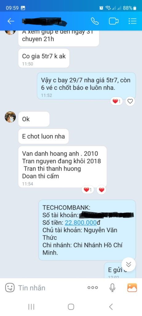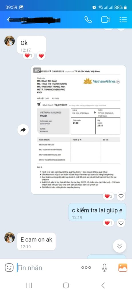 CASE ĐẶT VÉ THÀNH CÔNG TẠI BAY5S CỦA KHÁCH HÀNG