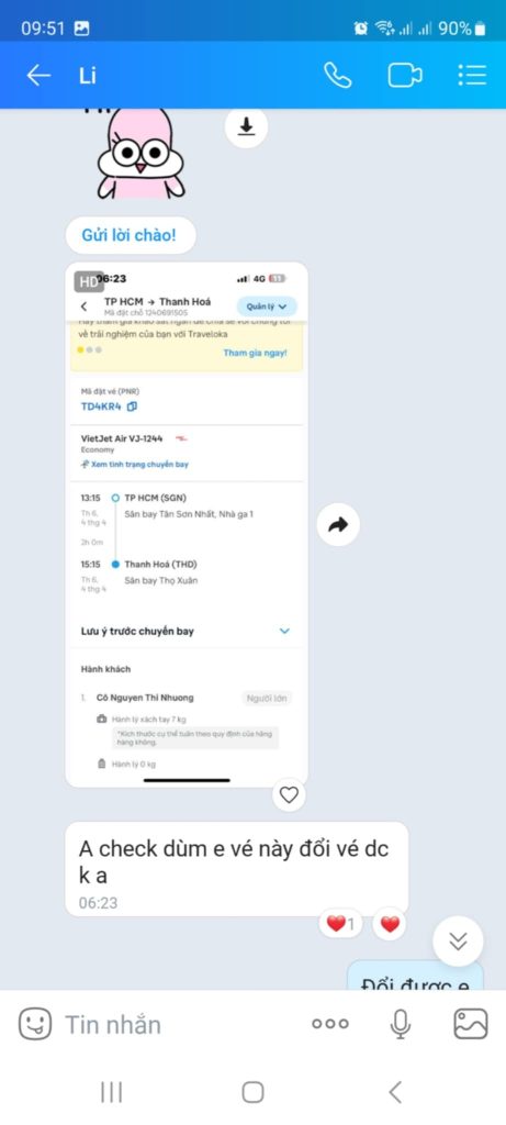 – Không biết thủ tục đổi vé máy bay , tự giải quyết thì tốn nhiều thời gian và công sức
